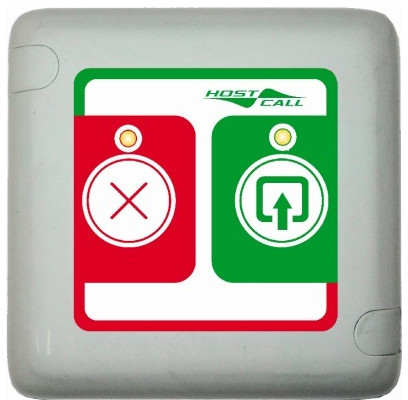 При нажатии на одну из кнопок соответственно кратковременно загорается индикатор: красным (запрет входа) или зеленым (при вызове входа) цветом.