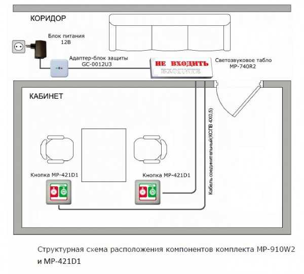 К данному светозвуковому табло можно дополнительно подключить сигнальные лампы (MP-611W1 - 2шт.). и такое же светозвуковое табло (1шт.).