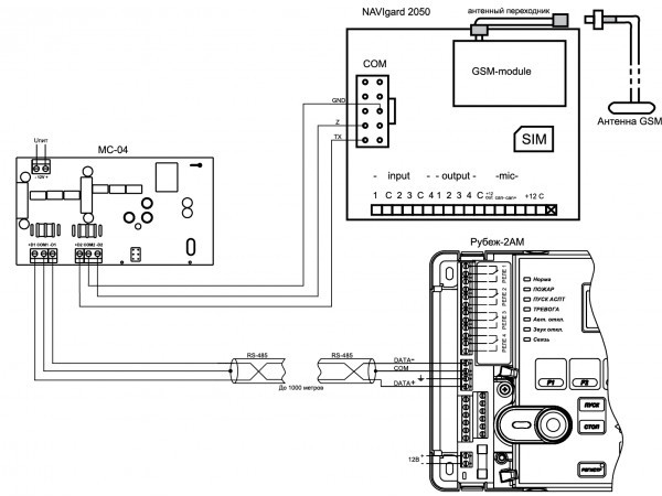 МС-4 - модуль сопряжения представляет собой цифровое электронное устройство, предназначенное для передачи сообщений в формате Contact-ID от адресной системы РУБЕЖ на передатчик NV2050, входящий в состав системы передачи извещений по GSM каналу Navigard.