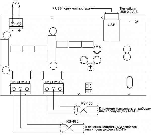 МС-ПИ - цифровой повторитель интерфейса предназначен для увеличения длины линии интерфейса RS-485 (до 7шт. последовательно) с помощью повторения принимаемого сигнала.