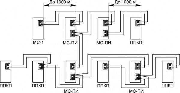 - удлинение интерфейса RS-485 и обмен информацией между приемно-контрольными приборами и компьютером, находящихся в разных частях одного интерфейса;