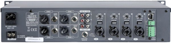 MX-604 - настольный и встраиваемый в 19" стойку/шкаф 4-зонный предварительный микшер - усилитель с встроенными: 2-х полосным эквалайзером (для каждого канала), генератором сигналов "Гонг" и "Сирена" предназначен для микширования и усиления звукового сигнала.