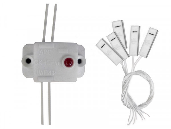 Окно-4М (ИО303-3) - извещатель охранный поверхностный ударноконтактный в составе: блока обработки сигналов (БОС - 1шт.) и датчиков разрушения стекла (ДРС - 5шт.) в корпусах из пластмассы предназначен для обнаружения в охраняемом закрытом пространстве разрушения остеклённых конструкций (в т. ч. стеклопакетов) и формирование извещения о тревоге путем увеличением тока в цепи шлейфа сигнализации (ШС).