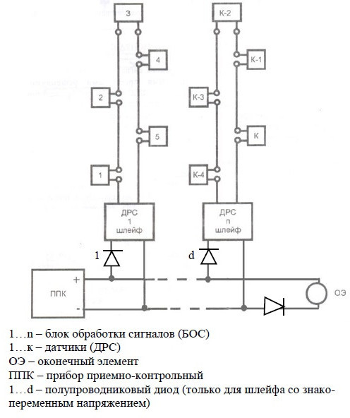 Извещатель устанавливается параллельно в ШС без соблюдения полярности (при постоянном напряжении питания) и при переменном - с соблюдением (через диод).