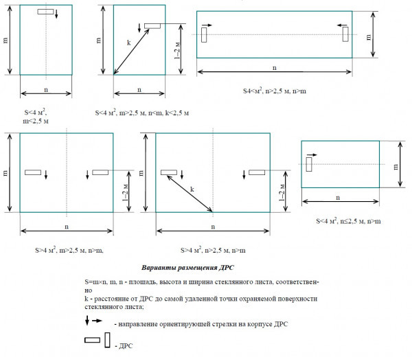 Внимание!!! Извещатель следует размещать с внутренней стороны наружных или внутренних остеклений с целью исключения случайного или намеренного повреждения всех его составных частей.
