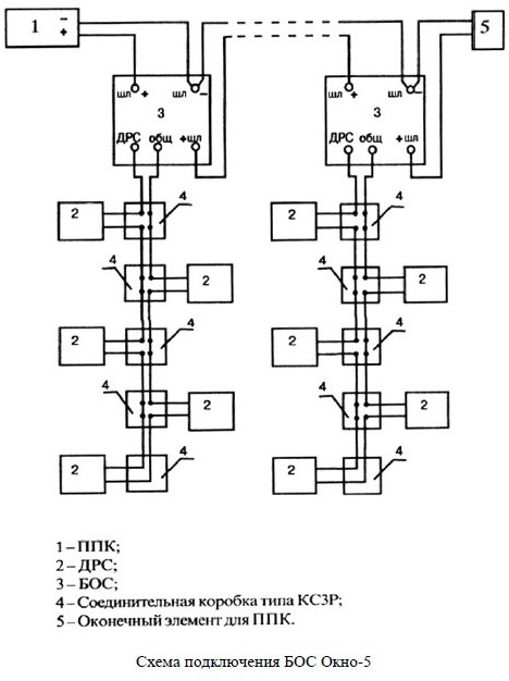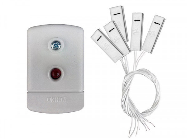 Окно-5 (ИО303-4) - извещатель охранный поверхностный ударноконтактный в составе: блока обработки сигналов (БОС - 1шт.) и датчиков разрушения стекла (ДРС - 5шт.) в корпусах из пластмассы предназначен для обнаружения в охраняемом закрытом пространстве разрушения остеклённых конструкций (в т. ч. стеклопакетов) и формирование извещения о тревоге путем увеличением тока в цепи шлейфа сигнализации (ШС).