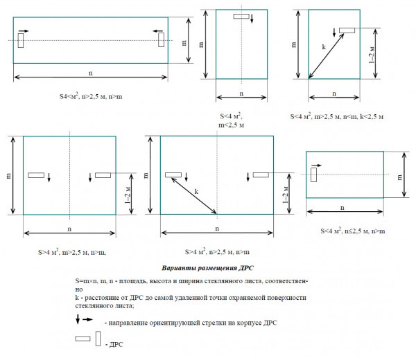 Внимание!!! Извещатель следует размещать с внутренней стороны наружных или внутренних остеклений с целью исключения случайного или намеренного повреждения всех его составных частей.