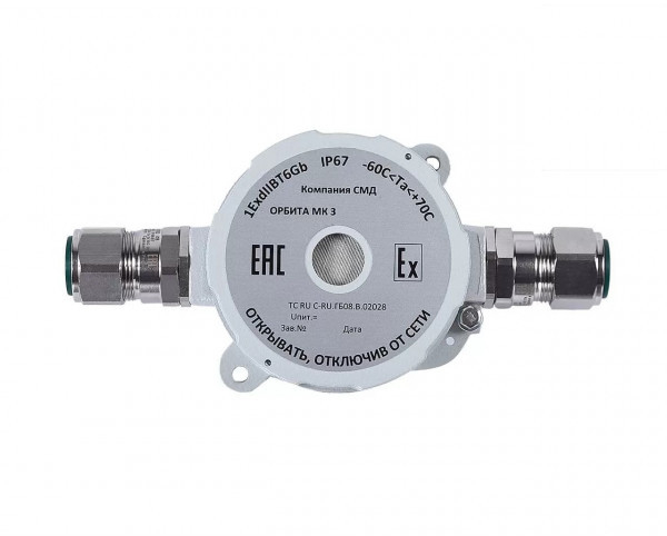 ОРБИТА МК З-А-Б - оповещатель пожарный взрывозащищенный (1ExdIIBТ6Gb), звуковой (105 дБ), напряжением питания (12 - 30 В), степенью защиты (IP67), с 2-мя кабельными вводами для прокладки бронированного кабеля диаметром (6,5 - 13,9мм -внутренний; 12,5 - 20,9 - наружный) и заглушкой (всё в комплектации) предназначен для подачи звукового сигнала в системах пожарной и охранной сигнализации при совместной работе с любыми приемно-контрольными устройствами и применяется на предприятиях химической, нефтегазодобывающей, нефтегазоперерабатывающей отраслей и взрывоопасных зонах других производств.