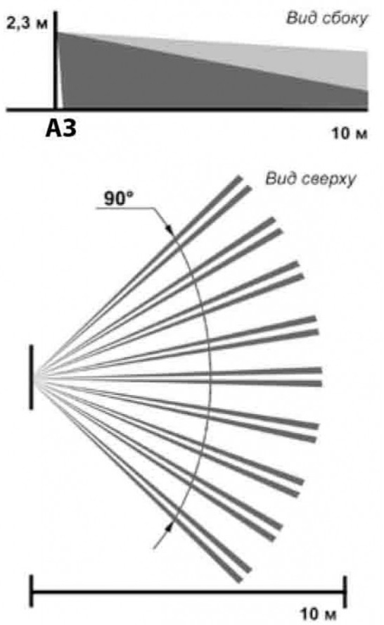 - объемная (ИК) и поверхностная (АК) зоны обнаружения (линза - "стандарт");