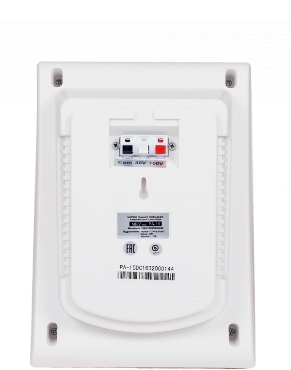 PA-15 - громкоговоритель настенный, накладной, трансформаторный с выходной мощностью 10 Вт и питанием 30/70/100В предназначен для воспроизведения сигналов ГО и ЧС, речевых сообщений и фоновой музыки.