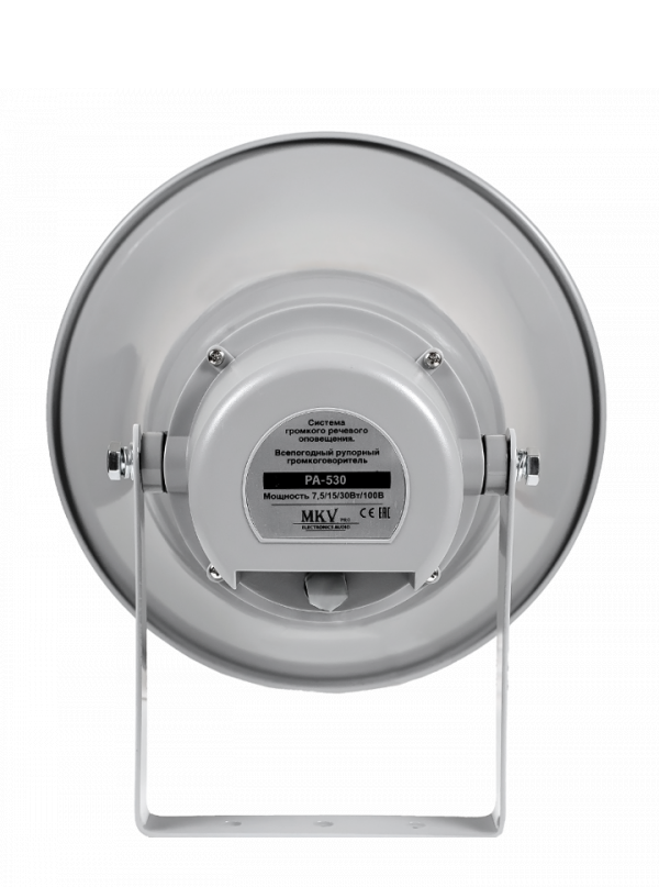 PA-530 - громкоговоритель рупорный, уличный (IP54), трансформаторный с выходной мощностью 7,5/15/30 Вт и питанием 100В предназначен для воспроизведения сигналов ГО и ЧС, речевых сообщений и фоновой музыки.