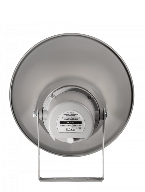 PA-550 - громкоговоритель рупорный, уличный (IP54), трансформаторный с выходной мощностью 12,5/25/50 Вт и питанием 100В предназначен для воспроизведения сигналов ГО и ЧС, речевых сообщений и фоновой музыки.
