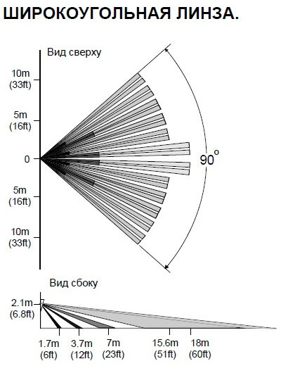 - объемная зона обнаружения (линза - "широкоугольная");