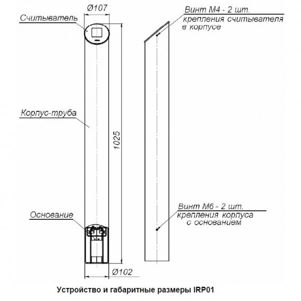 Корпус стойки-считывателя представляет собой колонну из нержавеющей стали с радиопрозрачной стеклянной крышкой.
