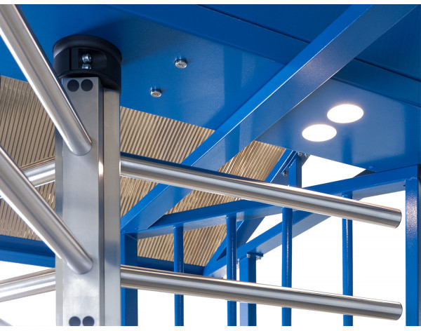 Дополнительная защита турникета от атмосферных осадков и попыток проникновения через его верх, достигается установкой крыши (приобретается отдельно), соединяемой с турникетом в единую конструкцию.