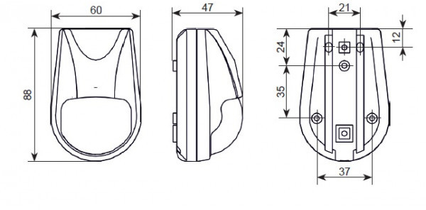 Оптико-электронный извещатель ПИК с объемной зоной обнаружения, устойчив к перемещению животных весом до 20 кг, микроконтроллер, дальность до 10 м, регулировка чувствительности, -30…+50 град. С