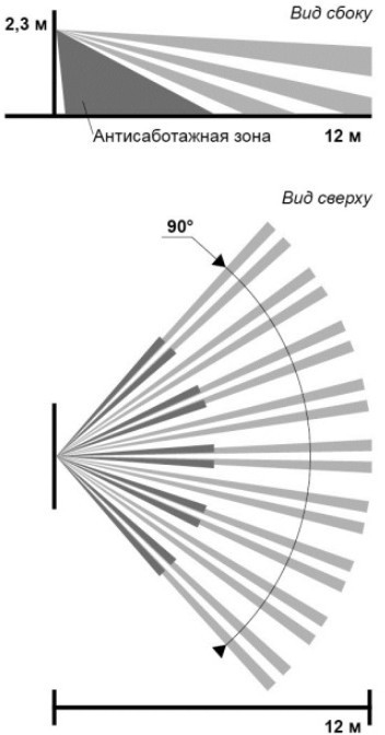 Оптико-электронный уличной установки, степень защиты оболочки IP54, дальность 12м (объем), питание 9…30В, диапазон температур -40…+50°С