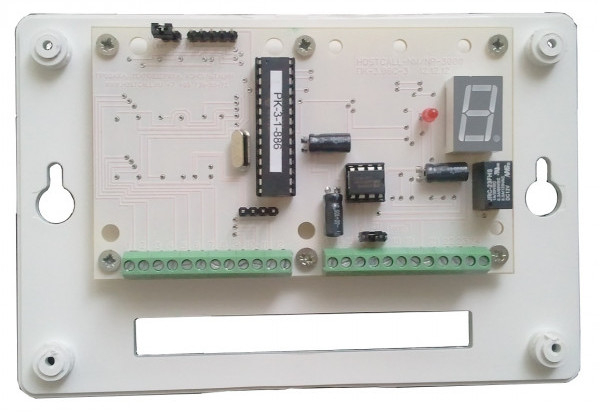 ПК–3.06 - палатный контроллер, предназначенный для обслуживания кнопок стандартного и экстренного вызова, кнопки присутствия/сброса, кнопки вызова врача, управления коридорной лампой, а также подачи сигналов вызова пульт NP-224.2, NP-124.1 или на ПЭВМ пульта медсестры по интерфейсной шине RS-485.