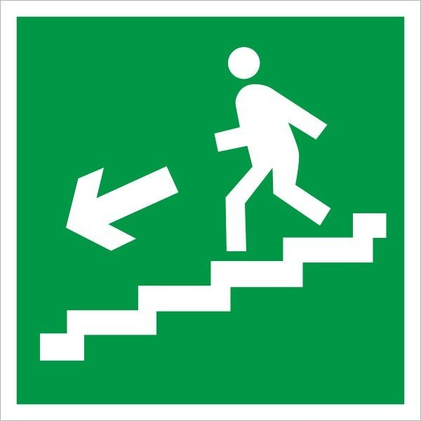 Фотолюминесцентный знак Направление к эвакуационному выходу по лестнице вниз (левосторонний) - элемент системы ФЭС. Размер 200x200.