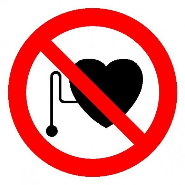 Знак вешается в местах и на оборудовании, где запрещено работать или находиться людям с вживленными стимуляторами сердечной деятельности.