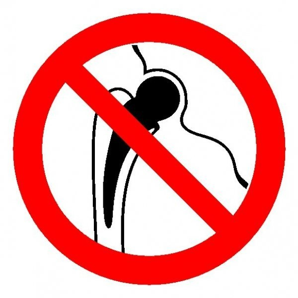 Знак размещается на местах, участках и оборудовании, где запрещено работать или находиться людям с вживленными металлическими имплантантами.