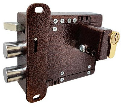 Полис-11-01 - электромеханический накладной, закрытого типа замок с механической клавишей открывания изнутри (снаружи - открывание с помощью ключа), без блокировки замка от закрывания предназначен для надежного запирания дверей, ворот и калиток с возможностью их дистанционного открывания, в том числе для работы совместно с аудио, видеодомофонами и кодовыми панелями.