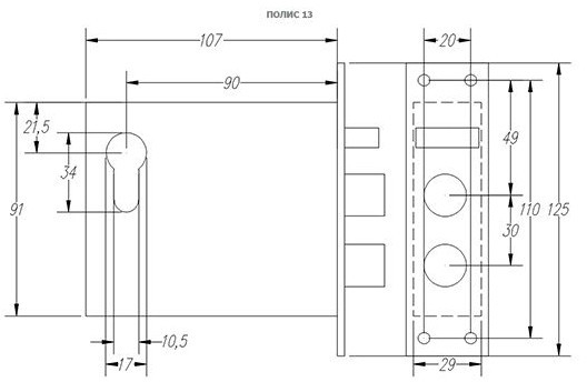 Полис-13-02 - электромеханический врезной, закрытого типа замок с механическим открыванием изнутри (снаружи - механическое открывание не предусмотрено), без блокировки замка от закрывания предназначен для надежного запирания дверей, ворот и калиток с возможностью их дистанционного открывания, в том числе для работы совместно с аудио, видеодомофонами и кодовыми панелями.