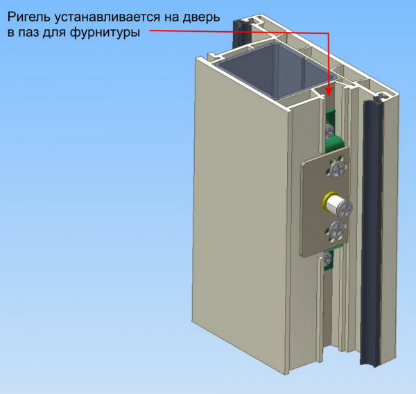 Для коррекции положения ригеля в зависимости от зазора между дверной коробкой и дверью используются регулировочные прокладки.