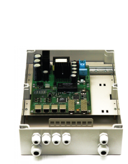 Гигабитный управляемый уличный коммутатор для подключения 4 камер с встроенным оптическим кроссом с поддержкой РоЕ+ (HighPoE) 802.3at (60W)
