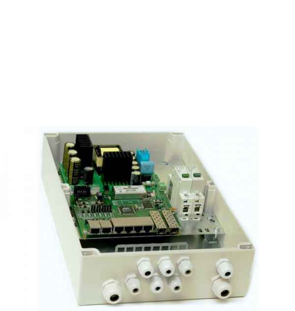 Гигабитный управляемый уличный коммутатор для подключения 6 камер с встроенным оптическим кроссом с поддержкой РоЕ+ (HighPoE) 802.3at (60W)