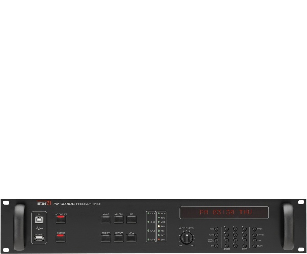 PW-6242B - недельный программируемый таймер в составе оборудования Inter-M серии 6000 используется в системах оповещения и управления эвакуацией для воспроизведения по недельному расписанию голосовых сообщений и музыкальных сигналов.