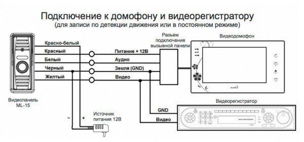 Подключение монитора к подъездному домофону происходит с помощью блока сопряжения: