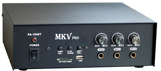 Малогабаритный трансляционный усилитель cо встроенным модулем MP3 (USB/SD), FM-тюнер, ИК-пульт управления и выносной микрофон типа Тангента .Микрофонный вход 2шт.Мощность 40 Вт. Выход/Импеданс 30В/70В/100В / 4Ом/8Ом/.Питание AC 230В 50Гц 10 / 0.5А.Габариты (WxDxH) 250 x 250 x 85mm.Вес 3.8 кг.