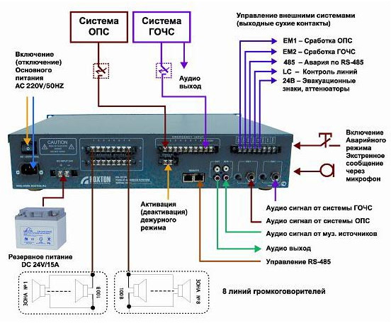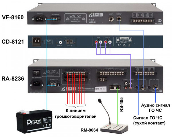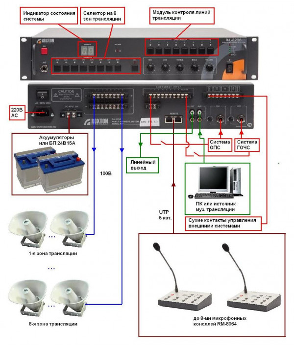 ROXTON RA-8236 - комбинированная система представляет собой цифро-аналоговый моноблок, на базе которого можно построить законченную полнофункциональную систему оповещения и может функционировать в двух режимах: