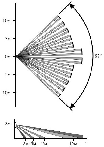 - объемная зона обнаружения (линза - "широкоугольная");