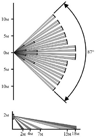 - объемная зона обнаружения (линза - "широкоугольная");