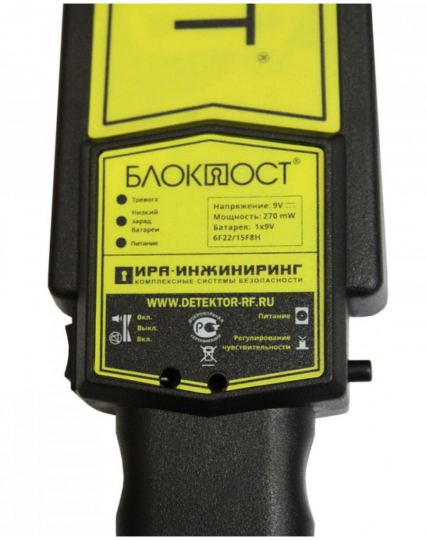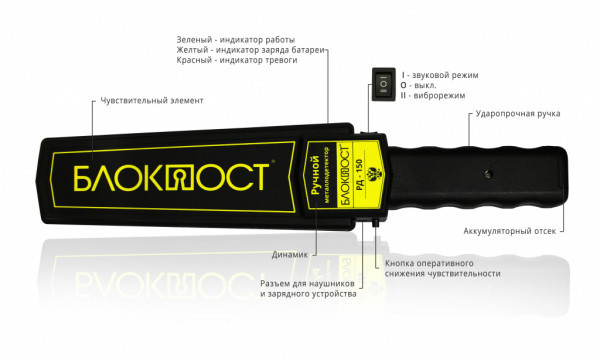 РД-150 БЛОКПОСТ - ручной досмотровый металлодетектор позволяет оперативно проверить человека, а так же портфели, сумки и другие личные вещи на наличие металлических предметов (оружие, взрывные устройства, содержащие металлические элементы и т. д.).