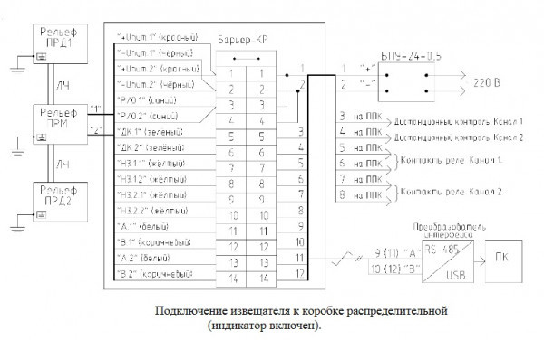РЕЛЬЕФ-2 - извещатель двухфланговый охранный линейный проводно-волновой с двойным (НП - нижний провод и ВП - верхний провод) чувствительным элементом предназначен для обнаружения проникновения на открытые уличные площадки, а также в охраняемое закрытое пространство и формирование извещения о тревоге путем размыкания (2 НЗ) выходных 2-ух контактов оптоэлектронных реле.