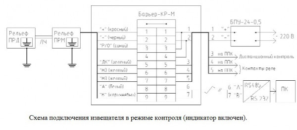 РЕЛЬЕФ(-50 +80С) - извещатель однофланговый охранный линейный проводно-волновой с двойным (НП - нижний провод и ВП - верхний провод) чувствительным элементом предназначен для обнаружения проникновения на открытые уличные площадки, а также в охраняемое закрытое пространство и формирование извещения о тревоге путем размыкания (1 НЗ) выходных контактов оптоэлектронного реле.
