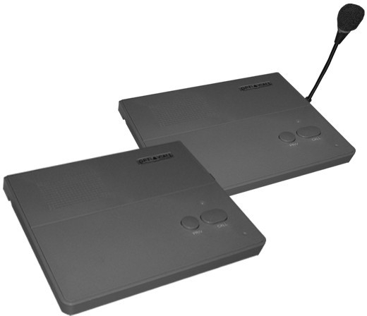 Комплект переговорного устройства, авт. полудуплексная громкая связь, блок клиента настольно-настенный пластиковый, микрофон блока врача на высокой шарнирной стойке. Блок питания в комплекте.
