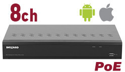 8 IP-каналов с PoE, H.265/H.264, 76 Мбит/с, 3840x2160 (8 Мп), ONVIF, P2P сервис (мобильный клиент iOS/Android), 1x SATA HDD 3.5'', 1x VGA/HDMI, 1x 100 Мбит/с Ethernet, 8 тревожных входов / 1 тревожный выход