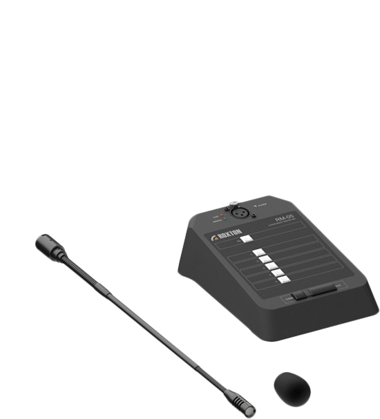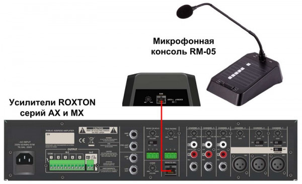 ROXTON RM-05 - микрофон настольный с селектором каналов на 5 зон (выбор зон, группы зон, всех зон) для комбинированных систем серии AX/MX, включением сигнала "Гонг" используется для построения систем речевого оповещения и музыкальной трансляции.