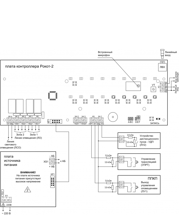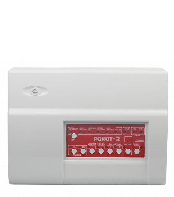 Рокот - 2 - прибор управления речевого оповещения для трансляции предварительно записанных 5-и речевых сообщений при возникновении пожара или других экстремальных ситуаций.