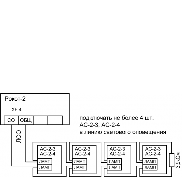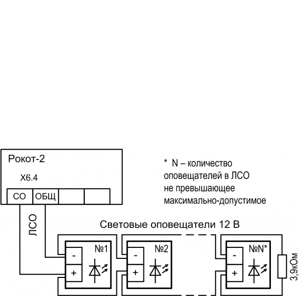 - Выход подключения линии светового оповещения (ЛСО) защищенный от перегрузки и короткого замыкания.