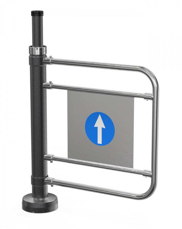 На пластиковой вставке калитки с одной стороны изображена стрелка, с другой стороны - знак запрета (для одностороннего прохода) или стрелка (для двухстроннего прохода).