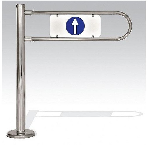 Односторонняя. Створка поворачивается на 90 градусов только в одну сторону по часовой стрелке (в правых калитках) или против часовой стрелки (в левых калитках). Предусмотрена возможность стыковки с ограждениями. На вставке с одной стороны изображена стрелка, с другой - знак запрета ( кирпич ) . Ширина перекрываемого прохода - 850мм, высота - 1020мм.