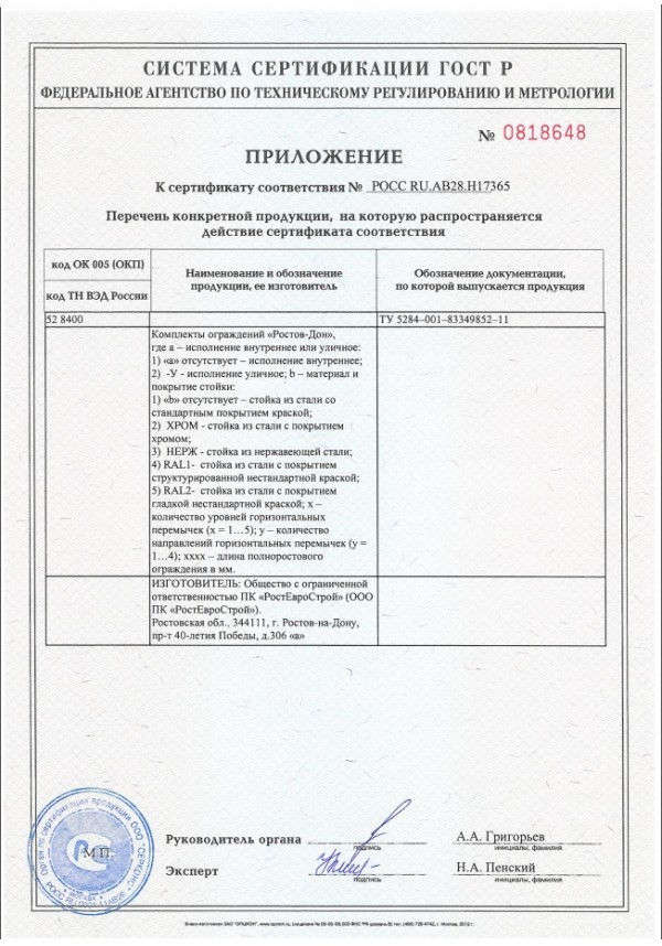 Ростов-Дон ОС1-у - стационарное ограждение состоит из 2-х стальных крашеных стоек УС1 диаметром 50 мм с унифицированными крепежными узлами (муфтами крашеными) и 2-х горизонтальных хромированных перемычек диаметром 32 мм (верхней и нижней).