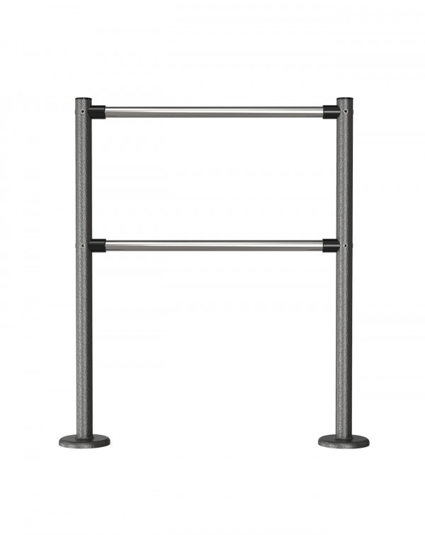 Комплект состоит из двух стационарных двухуровневых односторонних крашеных стоек ОС1-у , двух горизонтальных перемычек длиной до 1000 мм диаметром 32 мм.