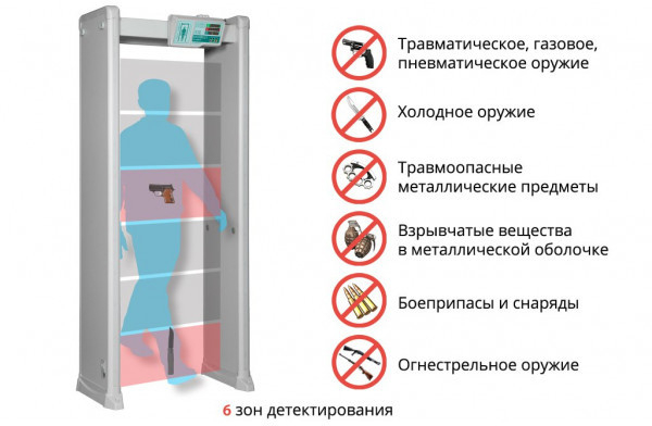 PC-Z-600 - стационарный арочный металлодетектор имеет 6 (шесть) взаимно перекрывающихся зон и предназначен для использования в учебных учреждениях, детских садах, кинотеатрах, музеях, цирках, магазинах и т.д.