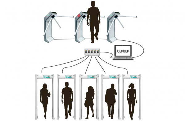 Металлодетектор можно устанавливать в связке со шлюзовыми кабинами, тамбур-шлюзами, турникетами, триподами, автоматическими дверями.